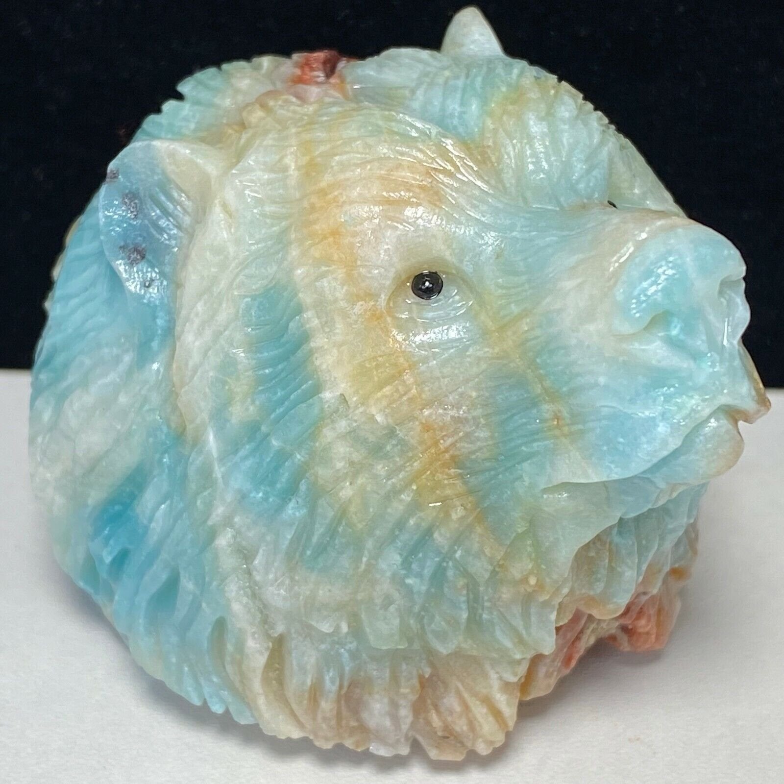 Exquisite Amazonite Bear with Geodic Quartz Crystals, 55mm Tall, 245g (Blue, Orange, Red, White)