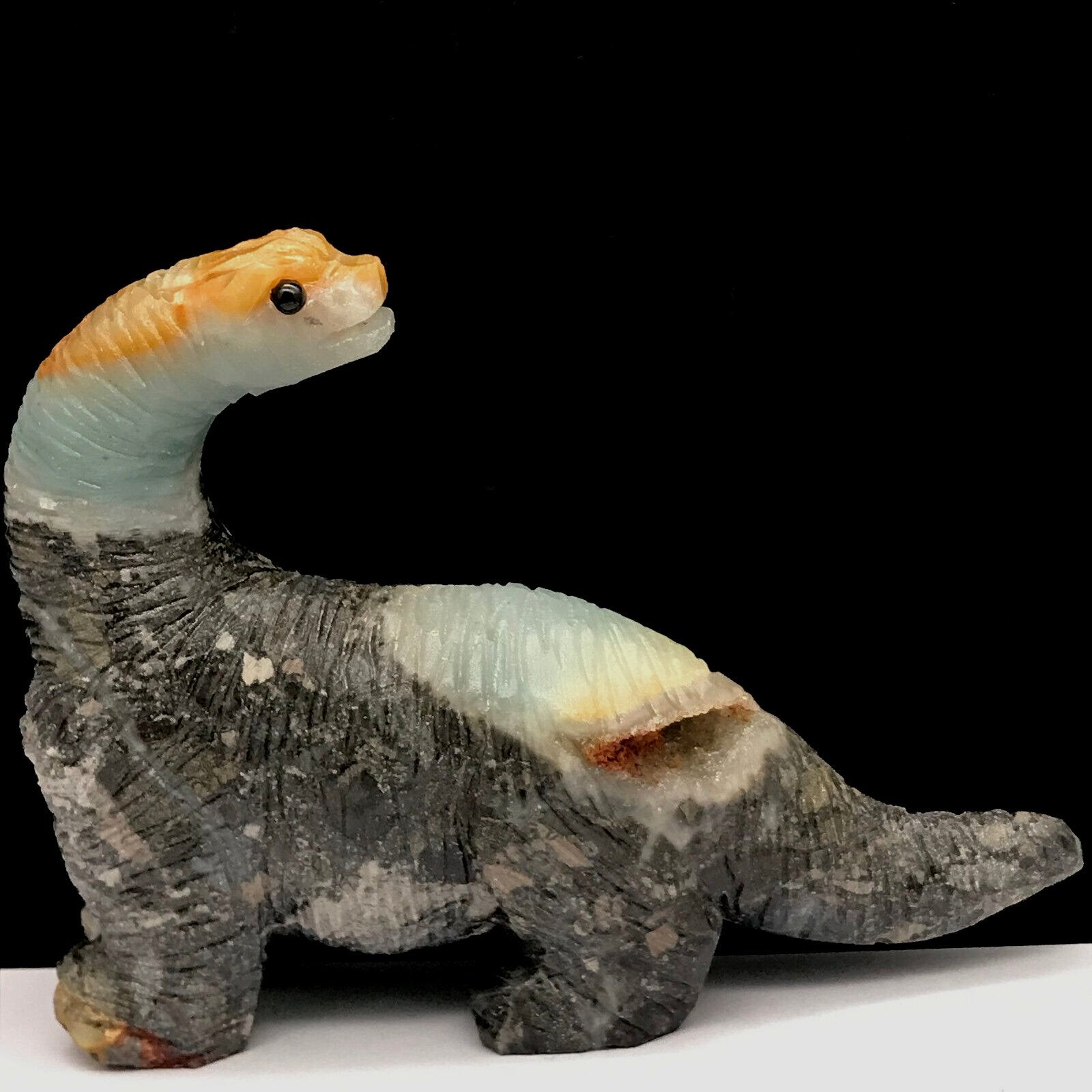 Natural quartz crystal cluster mineral specimen.Amazon Stone.Carved.Dinosaur.