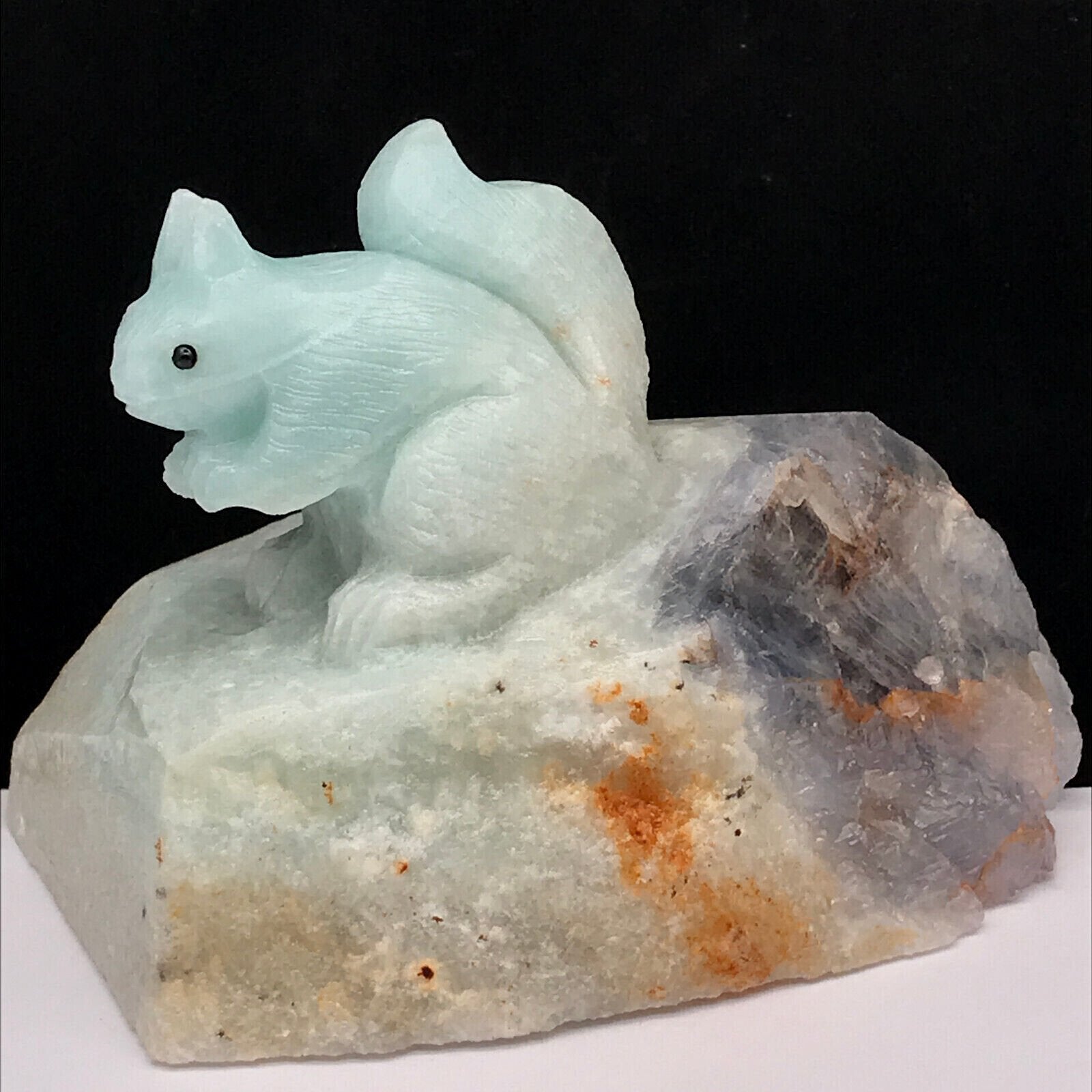 Natural quartz crystal cluster mineral specimen.Amazon Stone.Carved.The squirrel