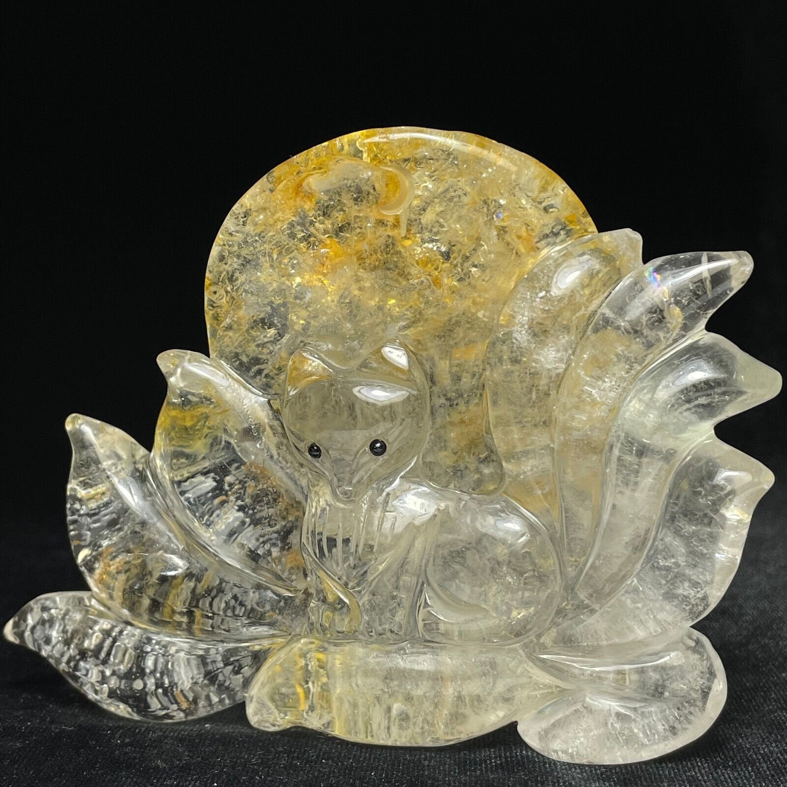 Rare Quartz Mineral Specimen。 Natural Crystal。 Hand Carved Nine Tailed Fox Gift。