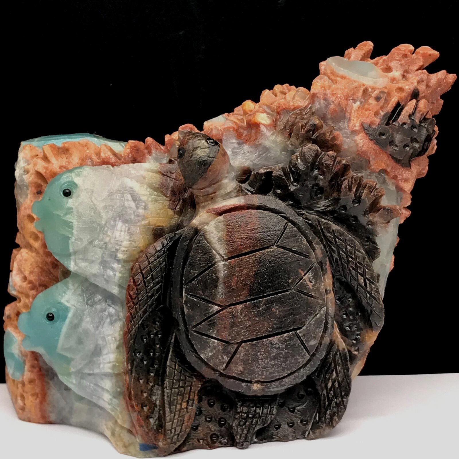 Precious Amazonite Coral Reef with Quartz Inclusion Crystals, 97mm Tall, 929g (Blue, Green, Red, Brown)