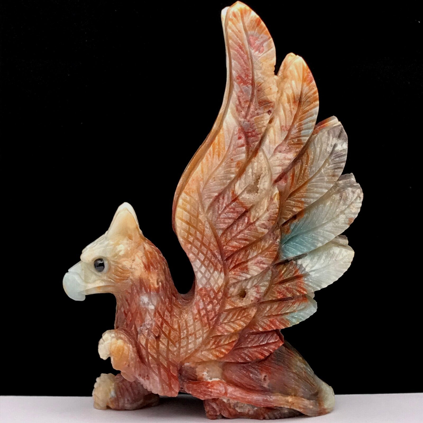 Natural quartz crystal cluster mineral specimen.Amazon Stone.Hand-carved.Griffon