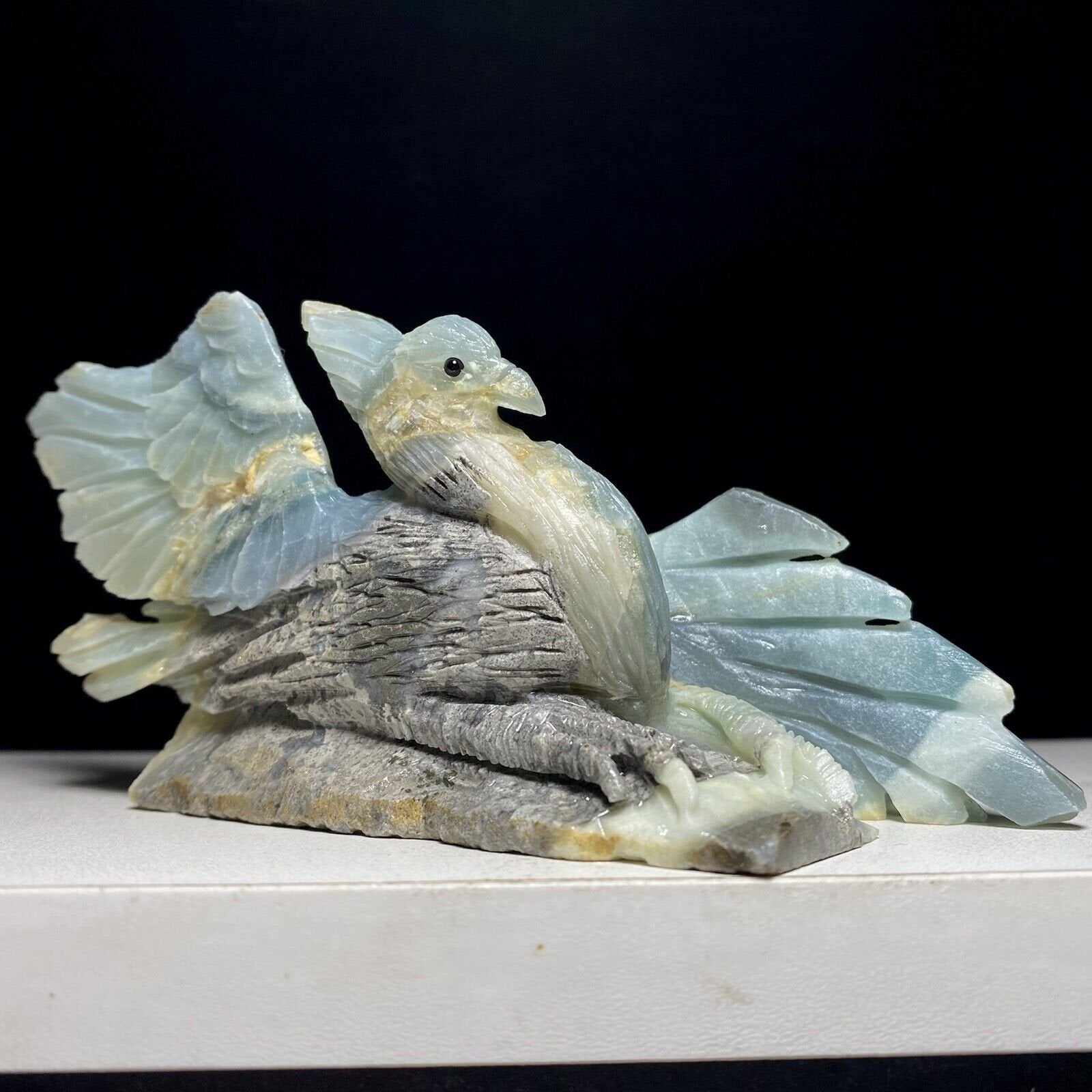 Natural Crystal Quartz Mineral Specimen Amazon Stone Handcarved phoenix