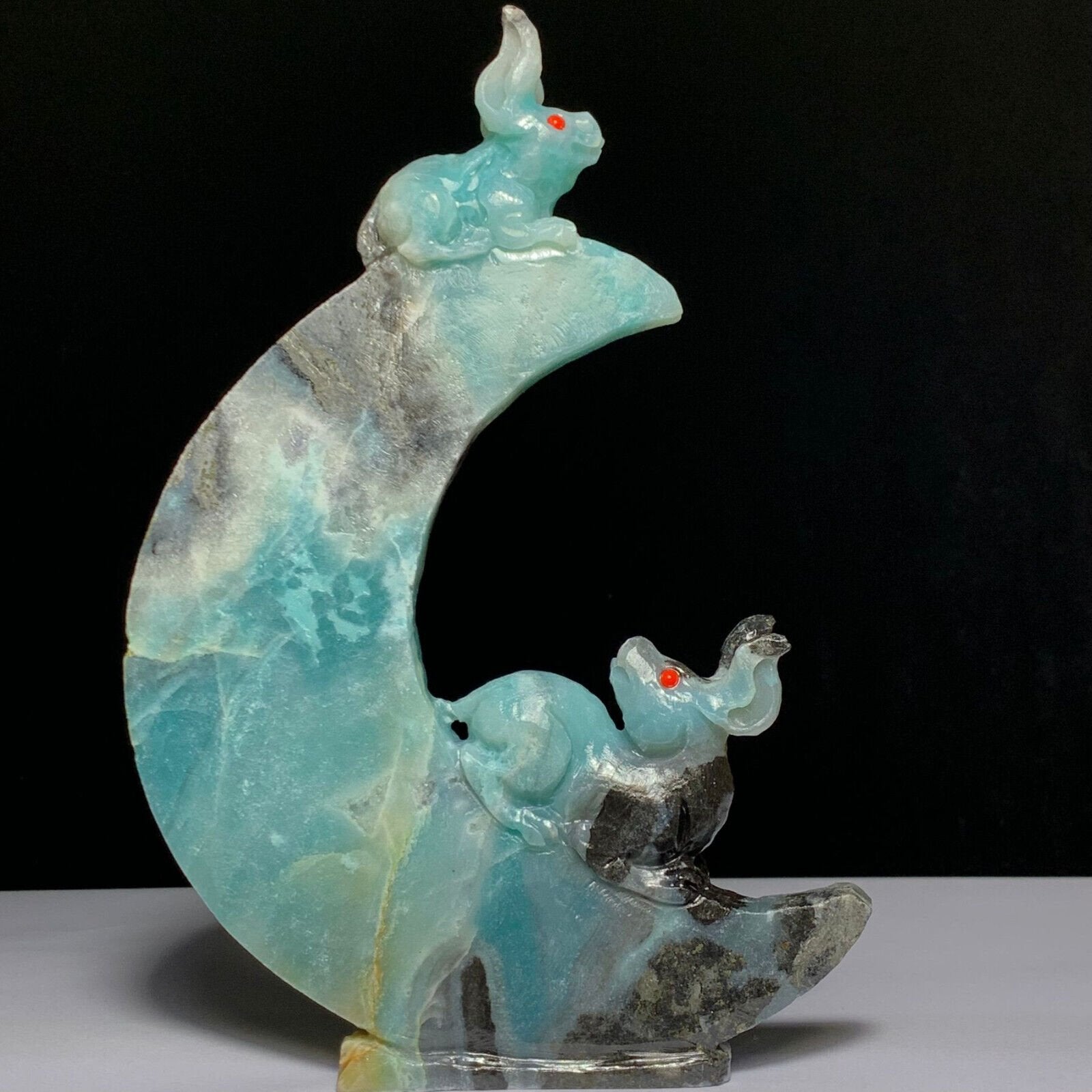 Precious Amazonite Rabbit, 156mm Tall, 287g (Blue, Gray, White)