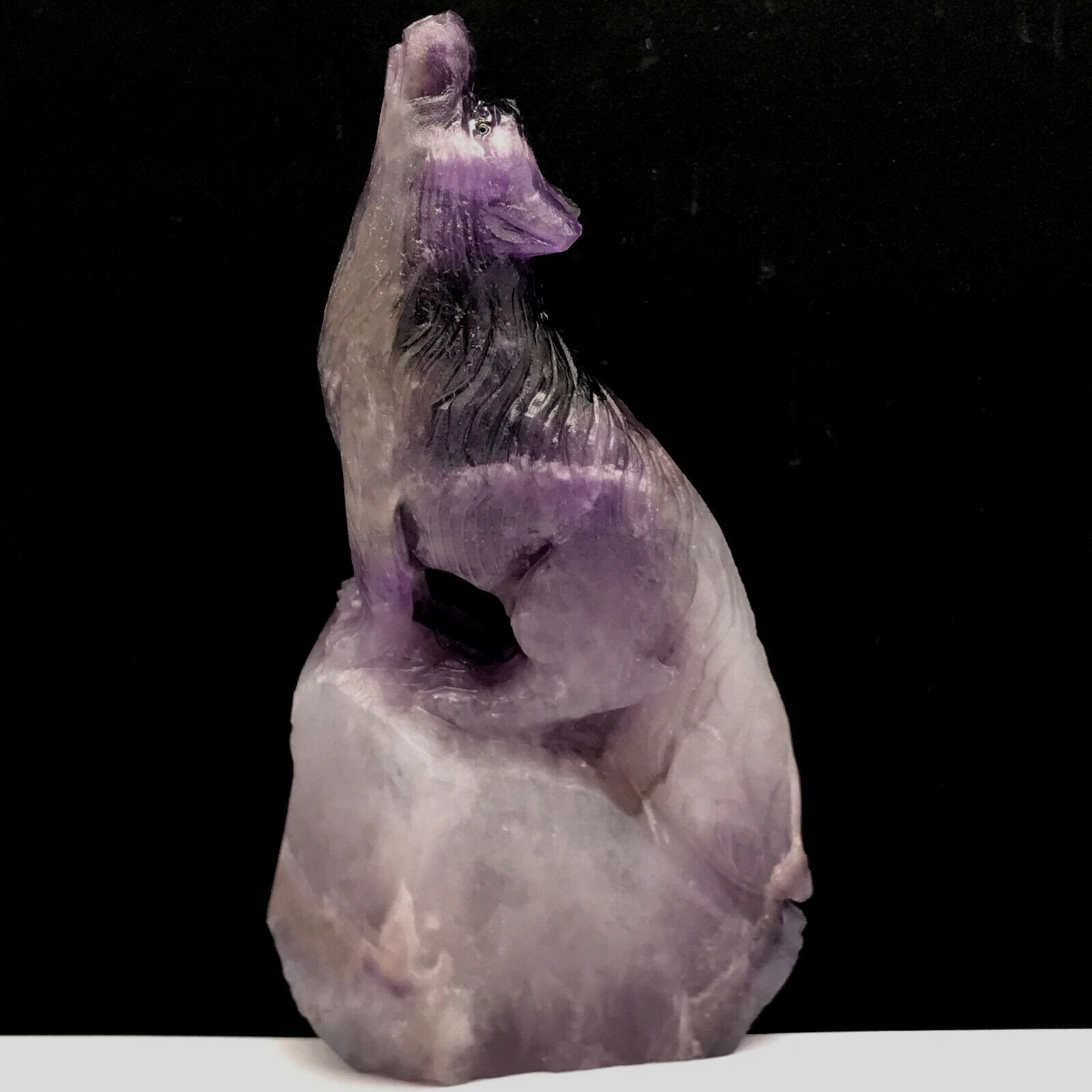 Natural quartz crystal cluster mineral specimen.Amethyst.Hand-carved.The Wolf.