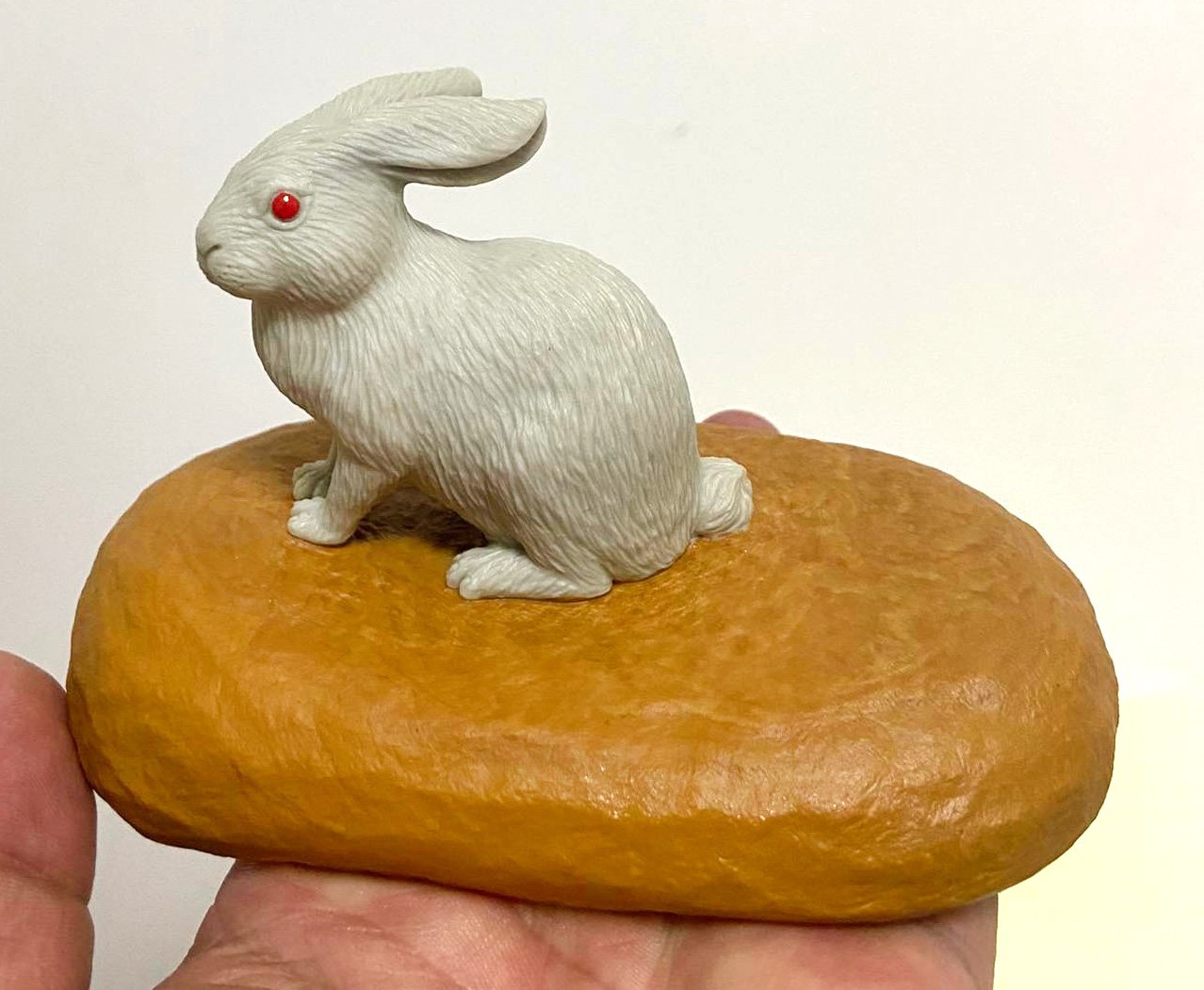 Precious DuoStone Rabbit, 77mm Tall, 518g (Green, Orange, Brown)