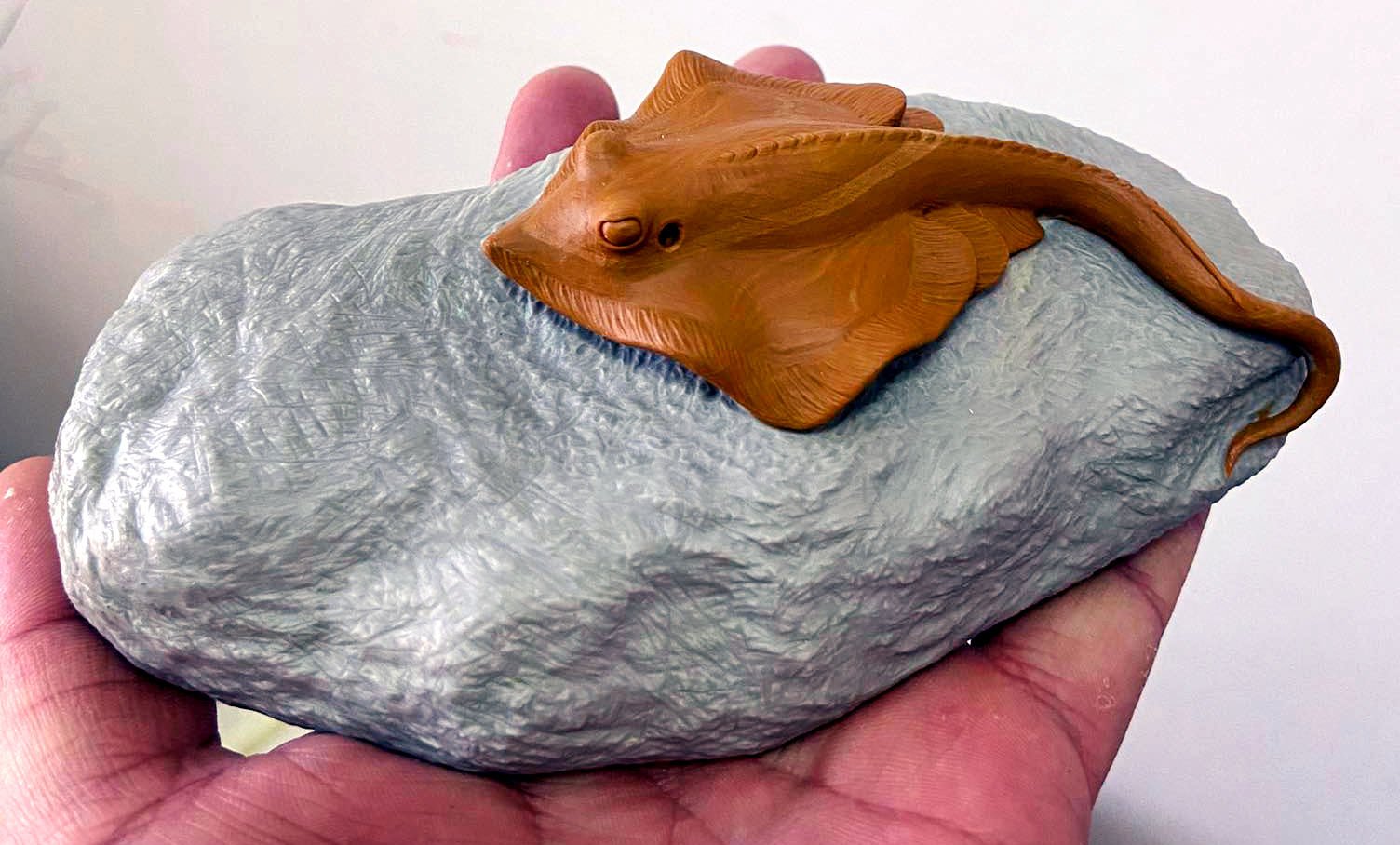 Precious DuoStone Stingray, 48mm Tall, 680g (Orange, Green, Brown)