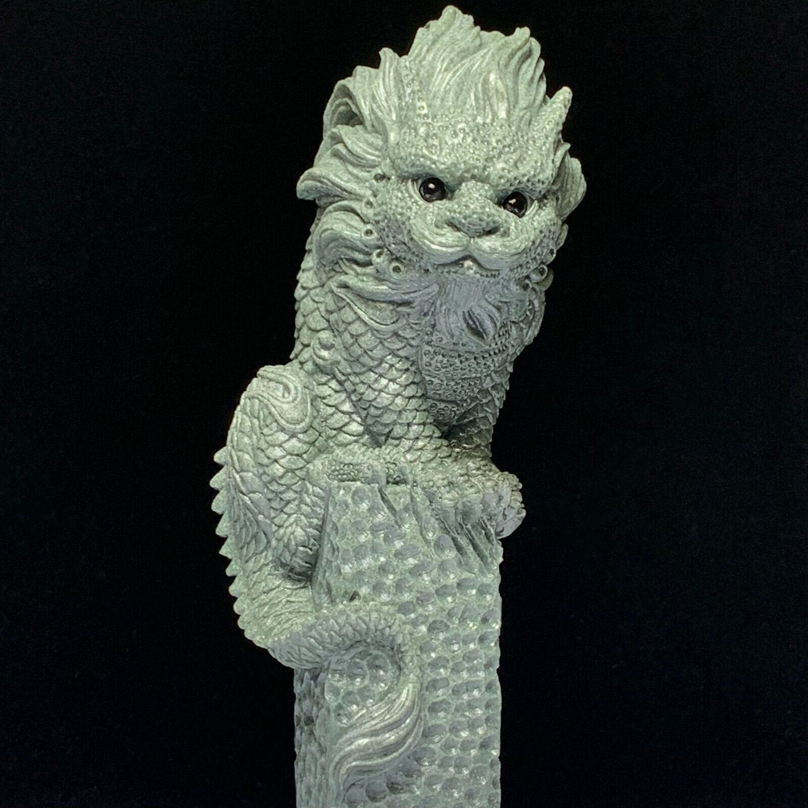 Precious Green Sandstone Eastern Dragon with Mica Flecks Crystals, 158mm Tall, 451g (Green, Black)