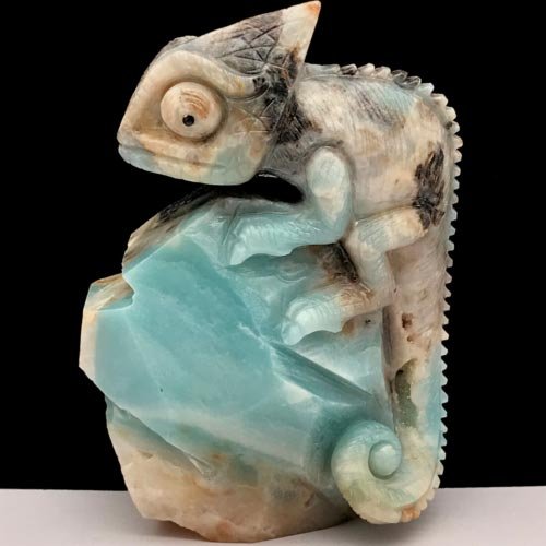 Natural quartz crystal cluster mineral specimen.Amazon Stone.Carved.Chameleon.