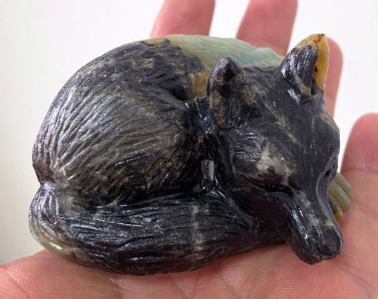 Rare Amazonite Fox or Wolf with Inclusion Crystals, 47mm Tall, 266g (Black, Gray)