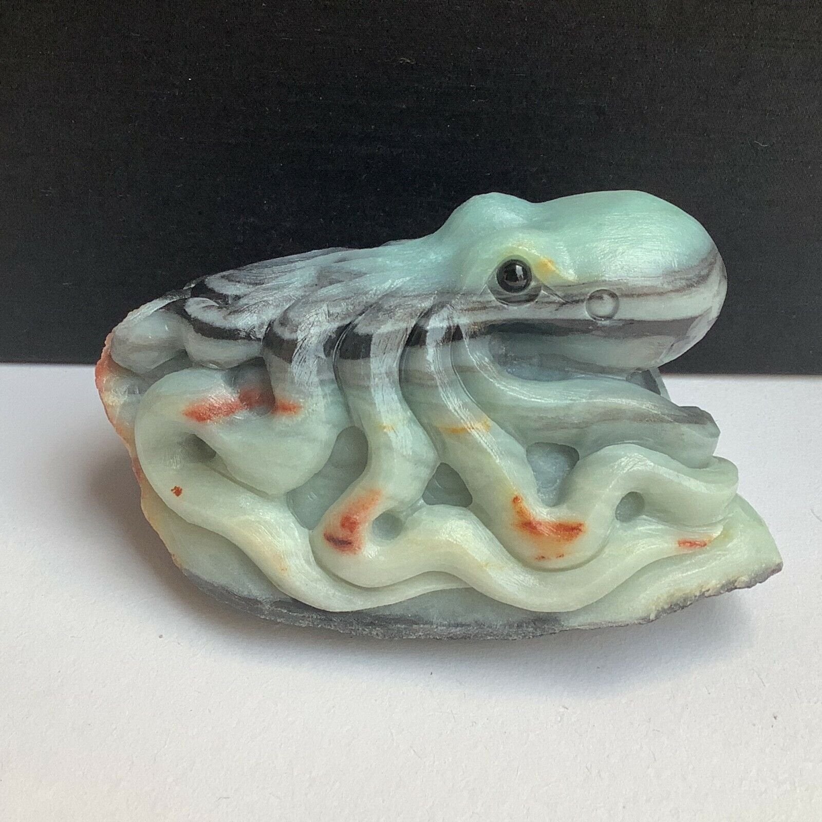 Natural quartz crystal cluster mineral specimen, amazonite, hand-carved octopus
