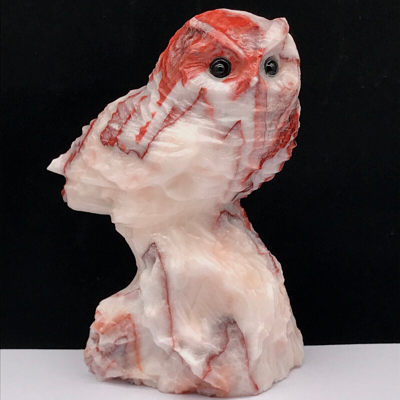 Rare Calcite Horned Owl, 89mm Tall, 299g (White, Pink, Red)
