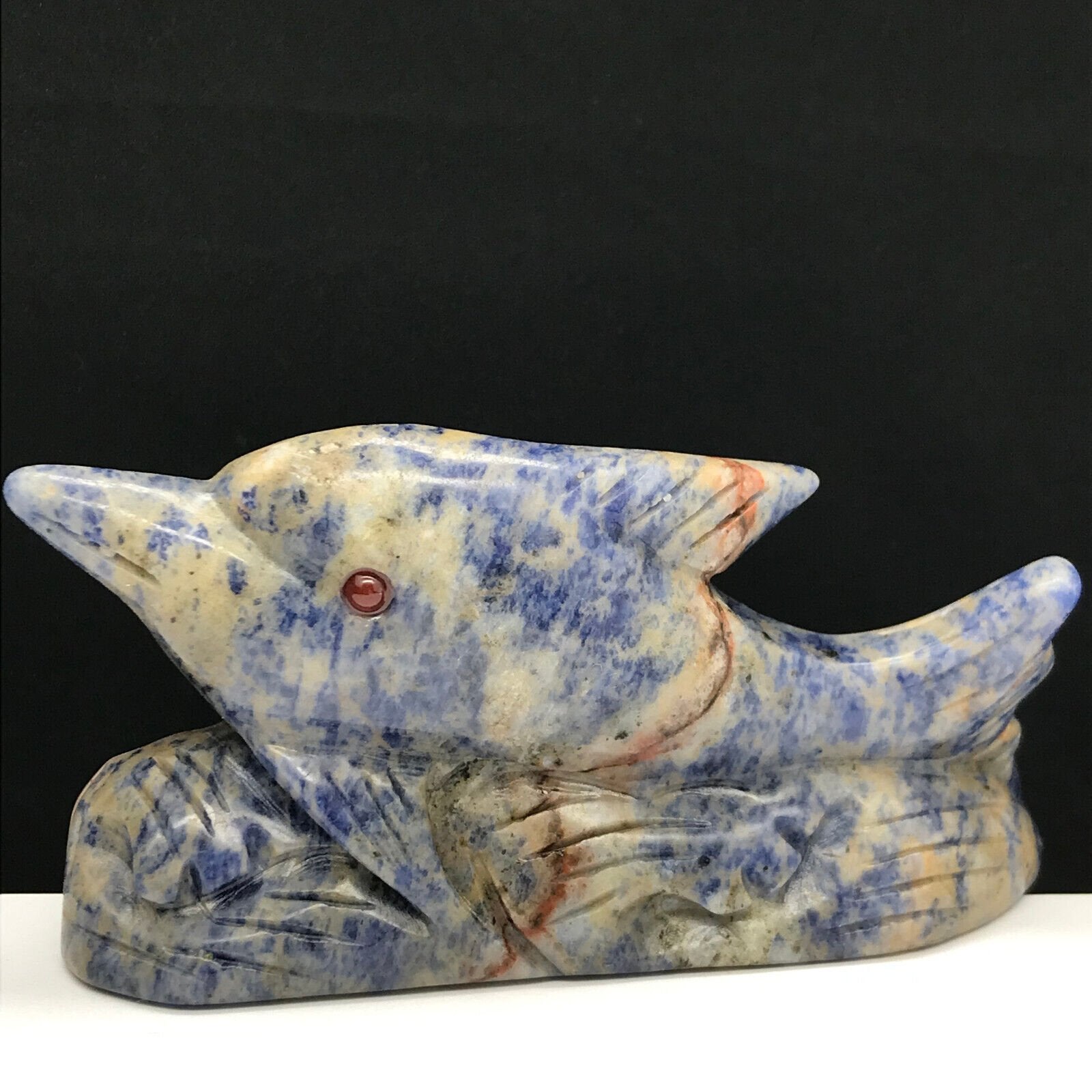 Rare Sodalite Dolphin, 58mm Tall, 259g (Blue, Yellow, Gray)