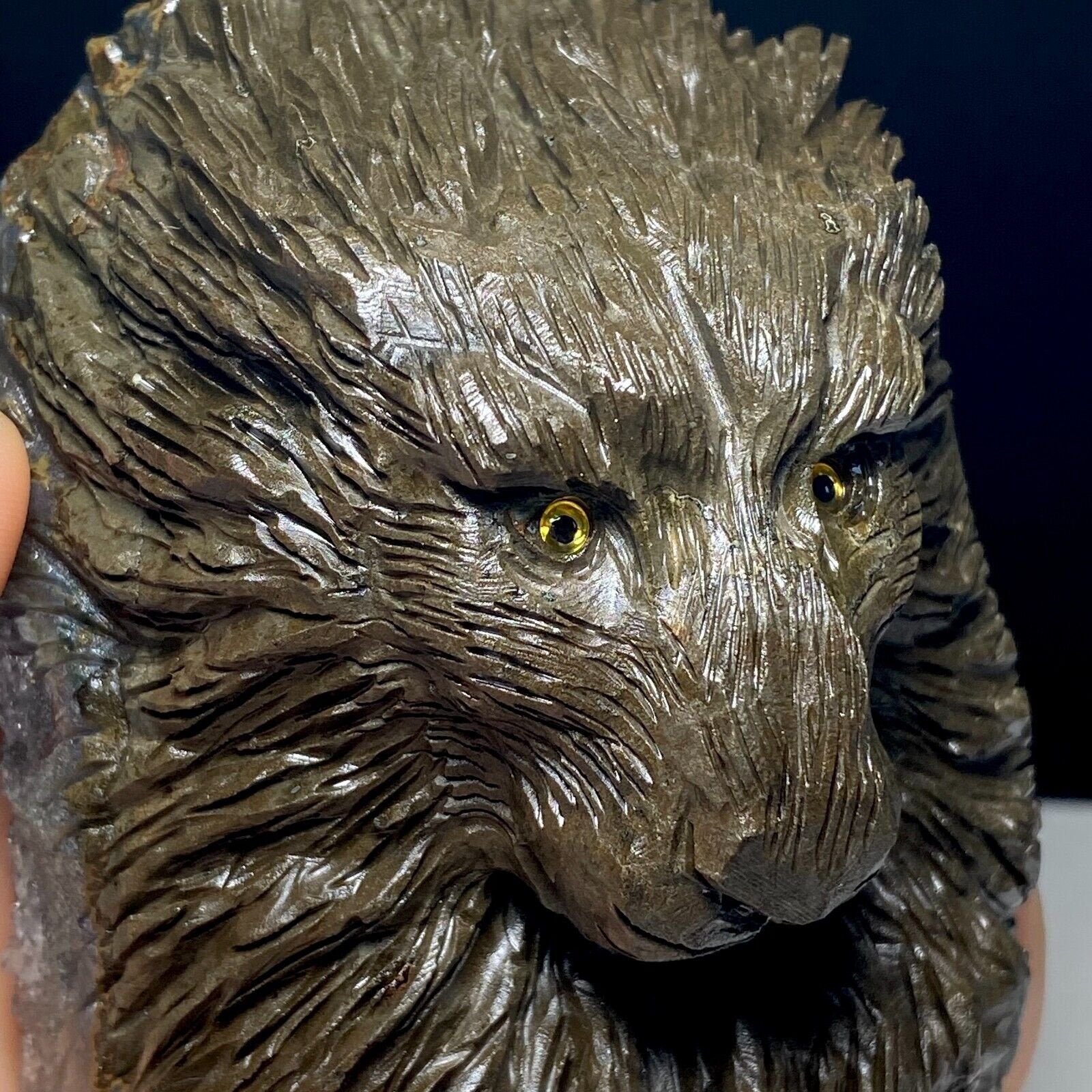 Natural Crystal Cluster Quartz Mineral Specimen Amethyst Handcarved Lion Gift