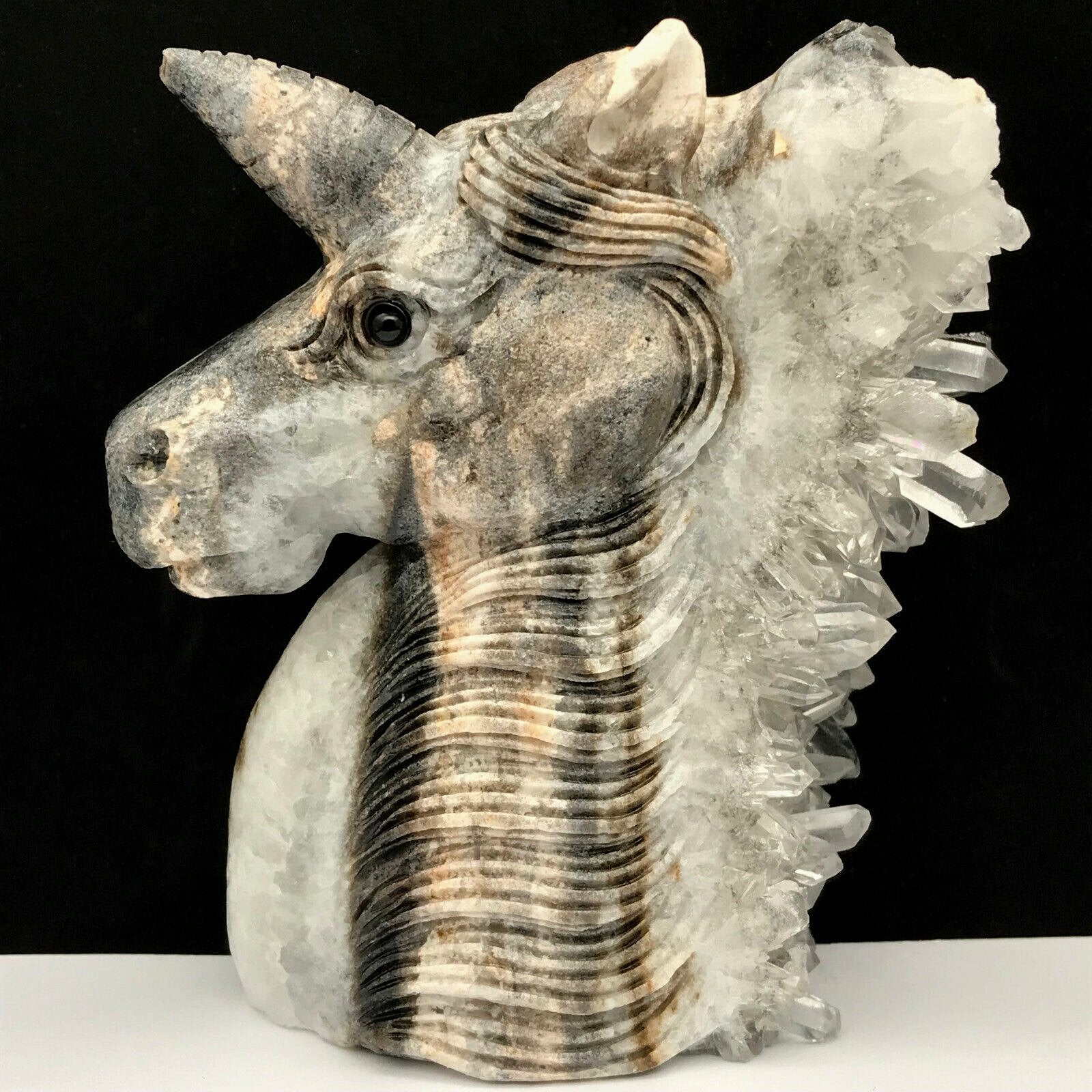 Natural quartz crystal cluster mineral specimen.Hand-carved.Unicorn.