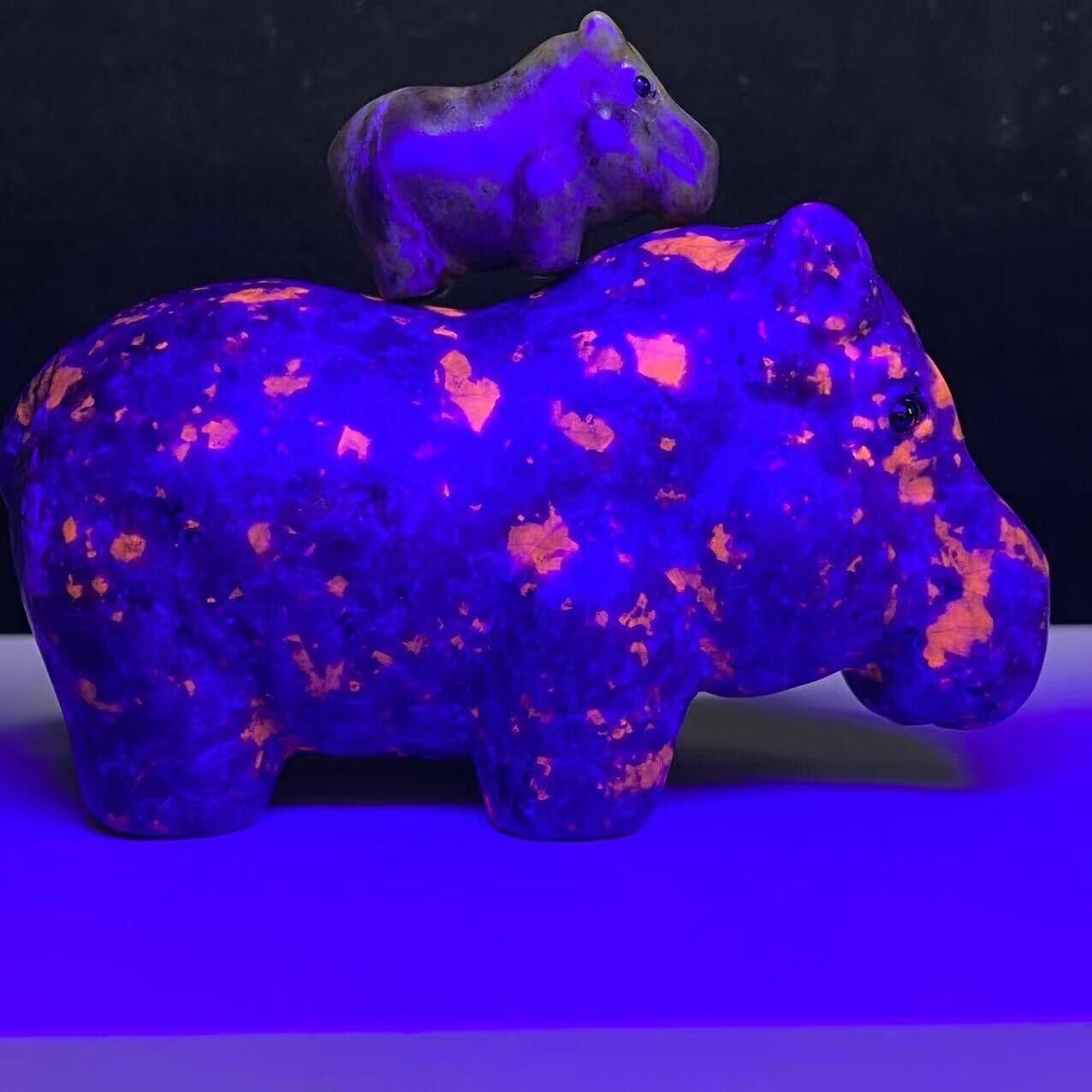 Rare Yooperlite Hippo with Inclusion Crystals, 22mm Tall, 381g (Orange, Gray, Black)