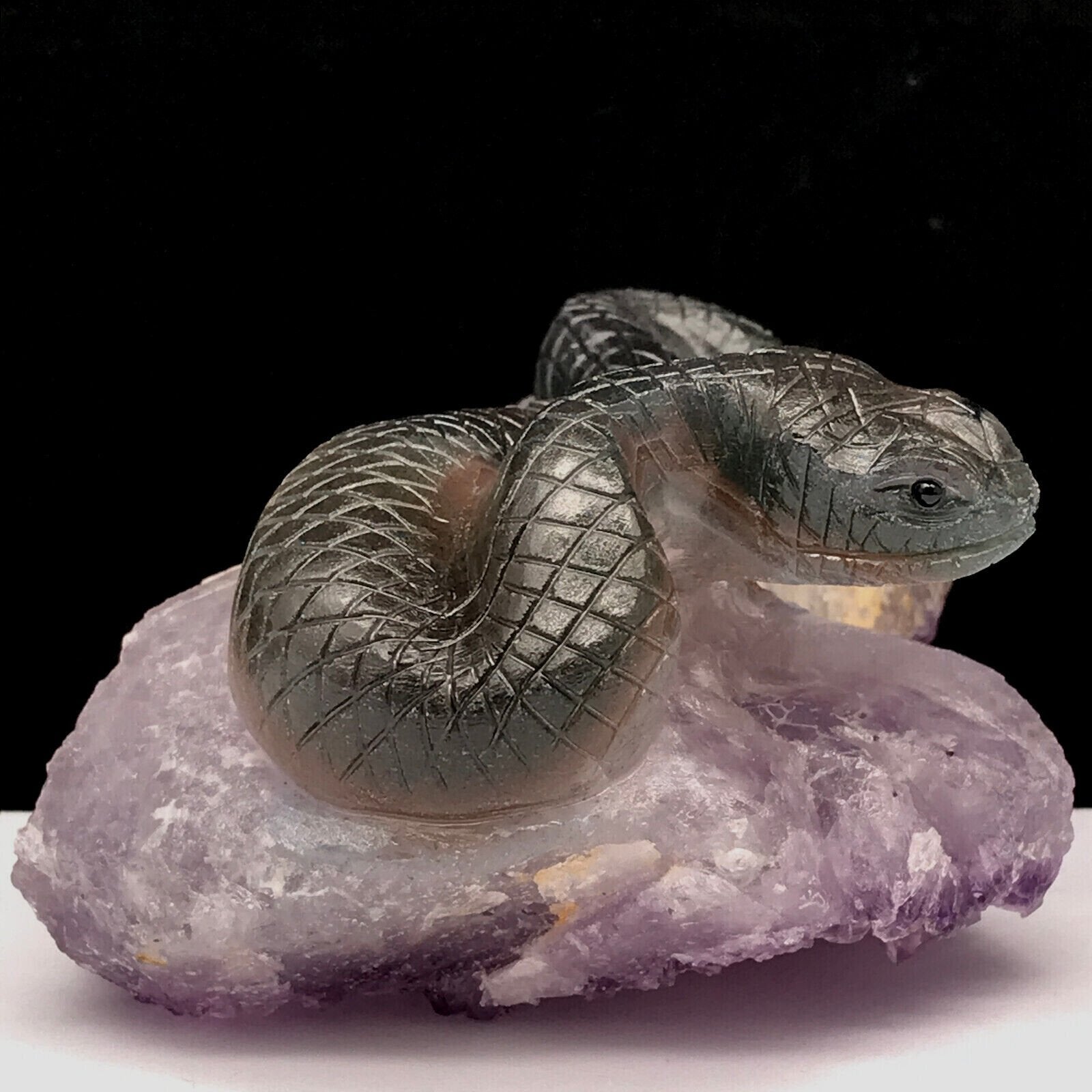 Natural quartz crystal cluster mineral specimen.Amethyst.Hand-carved.Snake.