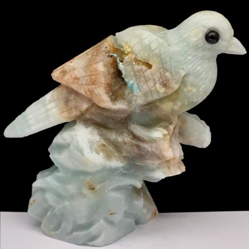 Stunning Amazonite Bird with Geodic Quartz Crystals, 81mm Tall, 206g (Pale Blue, Tan)