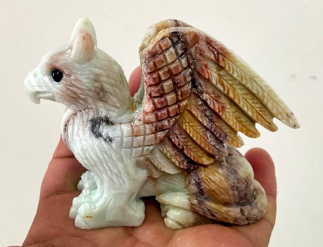 Stunning Amazonite Gryphon, 68mm Tall, 253g (Blue, Red, Orange, White)