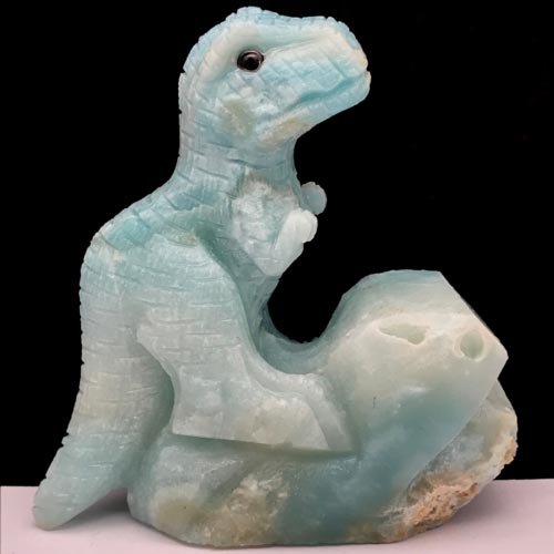 Natural quartz crystal cluster mineral specimen.Amazon Stone.Carved.Dinosaur.