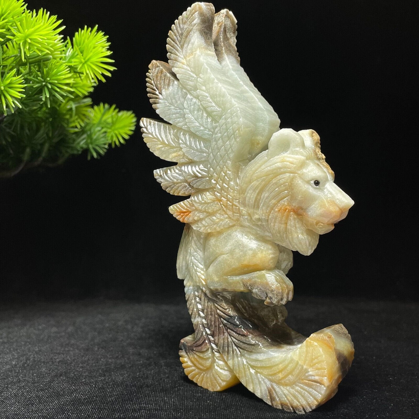 Stunning Amazonite Winged Lion with Geodic Quartz Crystals, 143mm Tall, 372g (Yellow, Blue, Brown)