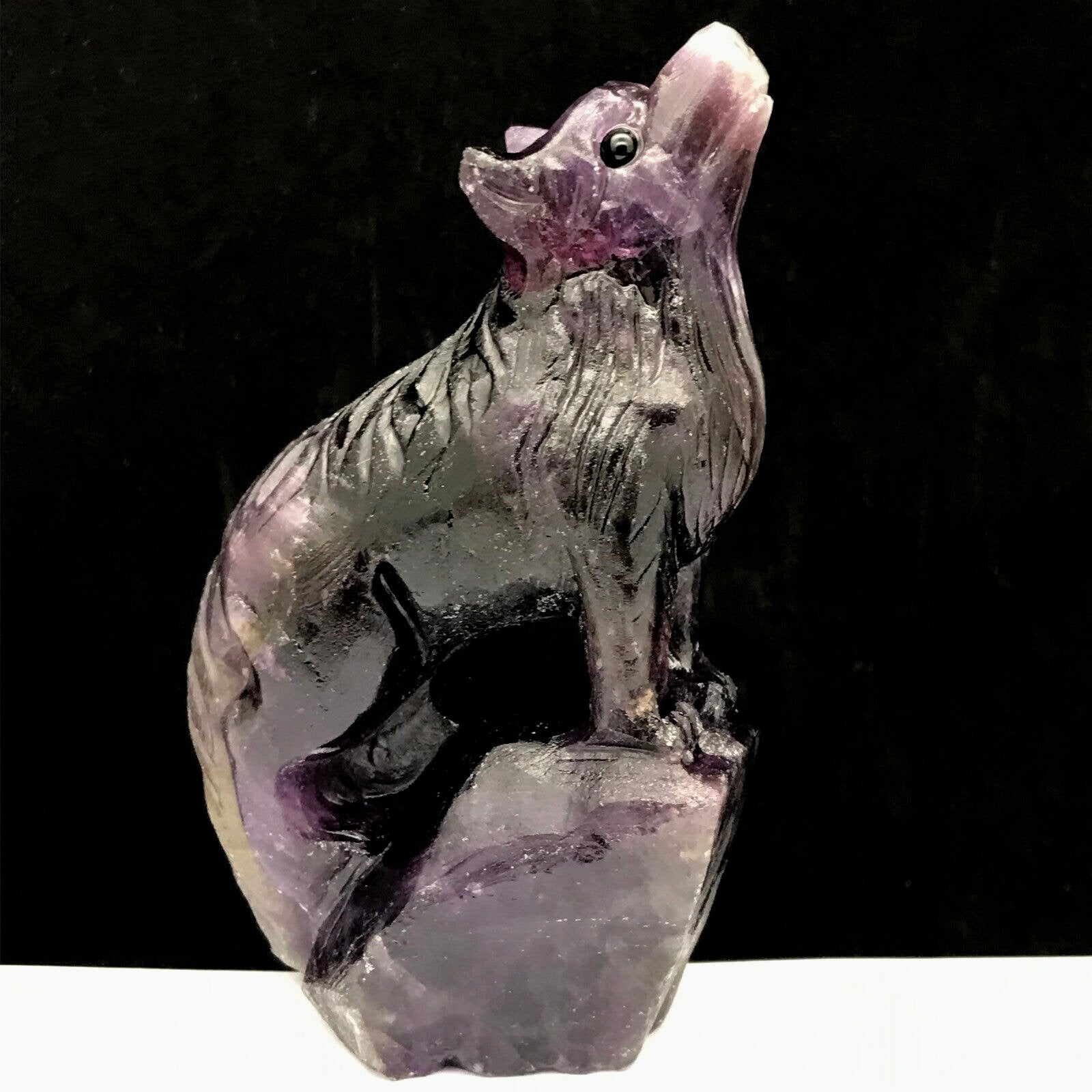 Natural quartz crystal cluster mineral specimen.Amethyst.Hand-carved.The Wolf.