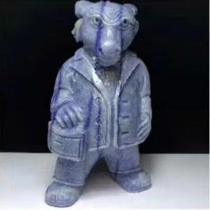 Stunning Blue Aventurine Anthro Cape Buffalo, 105mm Tall, 294g (Blue, Gray)