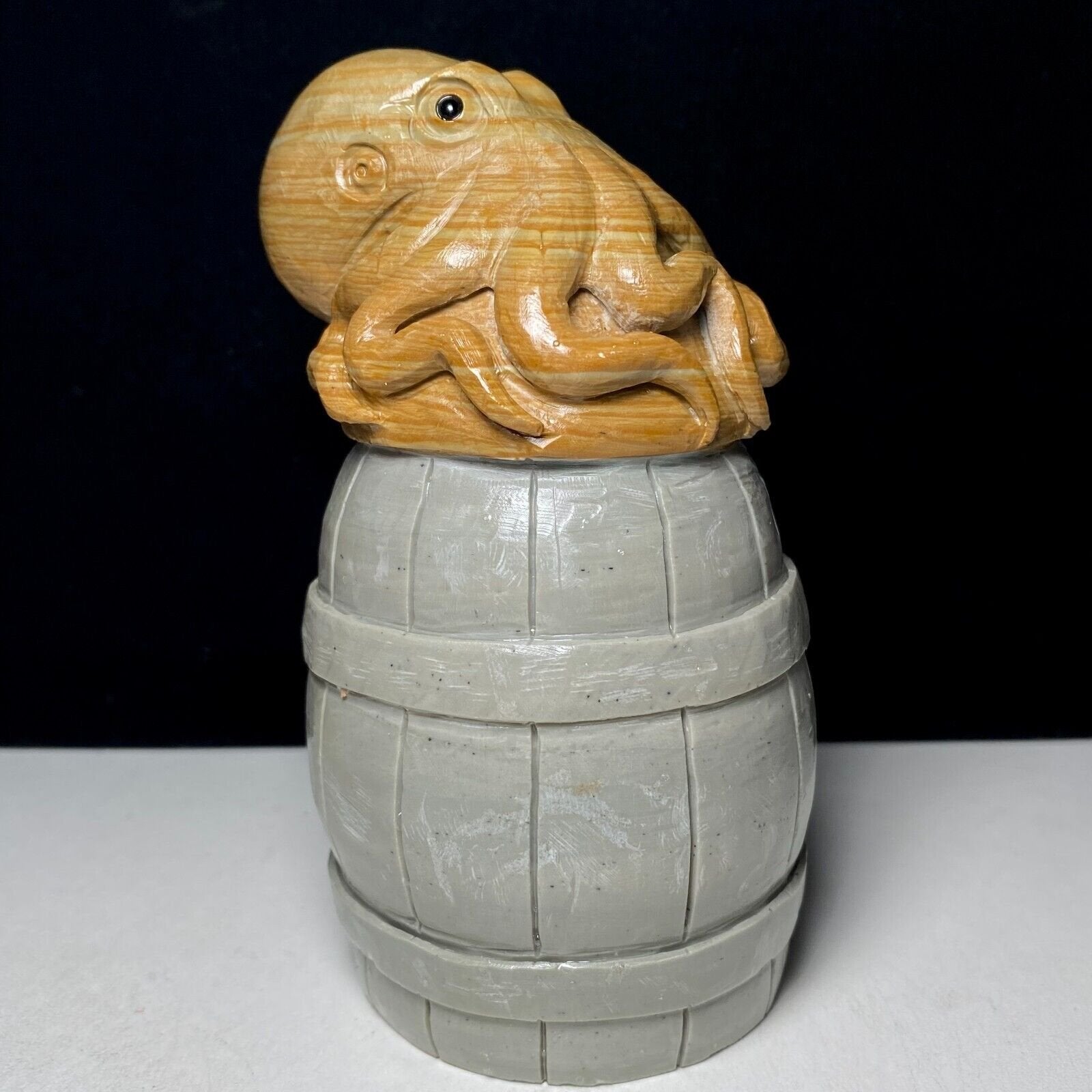 Stunning DuoStone Octopus, 113mm Tall, 664g (Orange, Yellow, Gray)