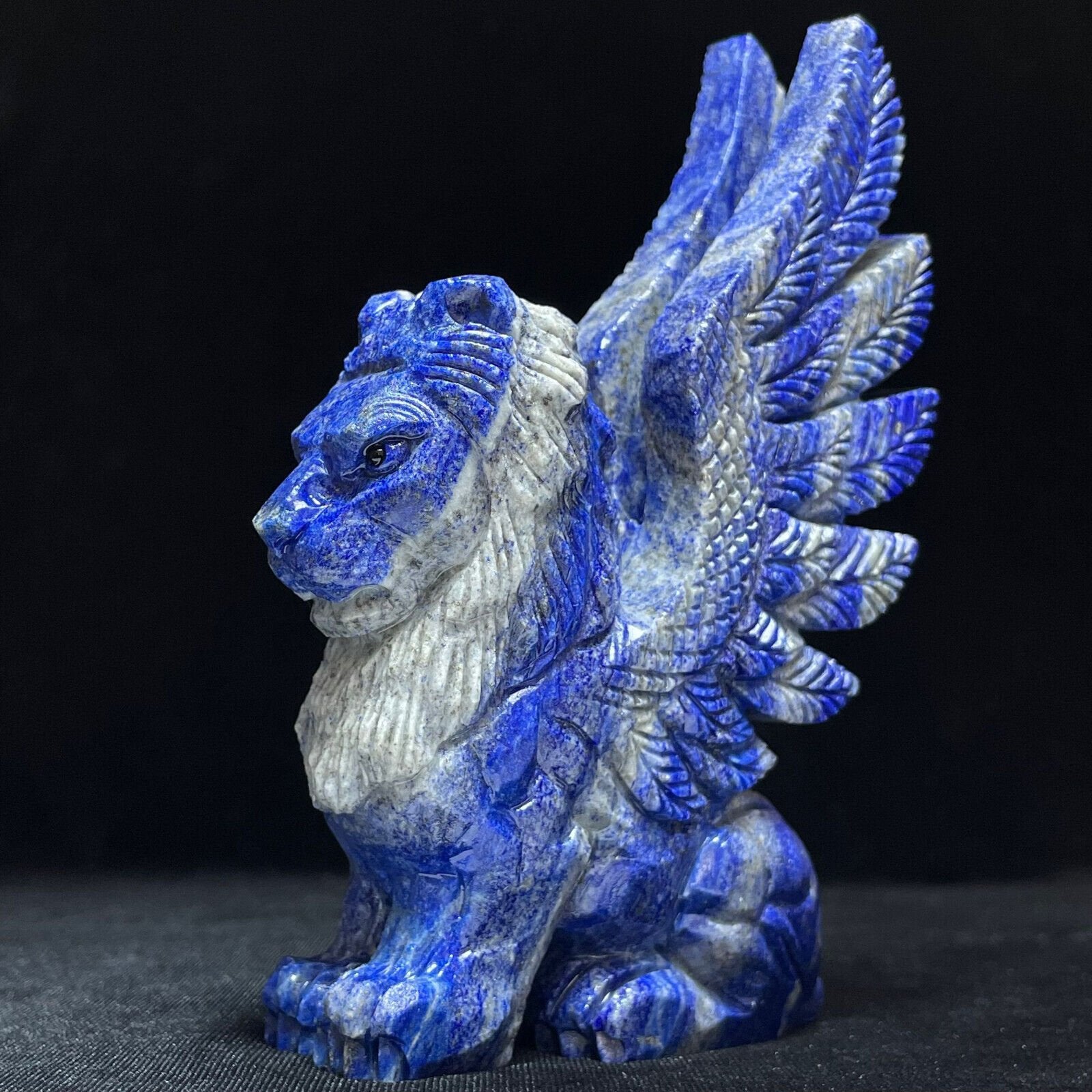 Stunning Lapis Lazuli Winged Winged Lion with Pyrite Crystals, 121mm Tall, 412g (Blue, White, Gold)