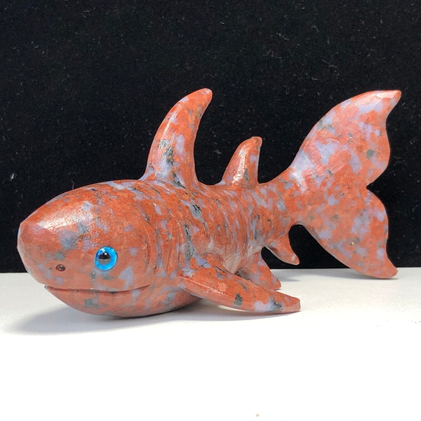 Stunning Rhyolite Shark with Quartz Inclusion Crystals, 74mm Tall, 295g (Red, Brown, Clear)