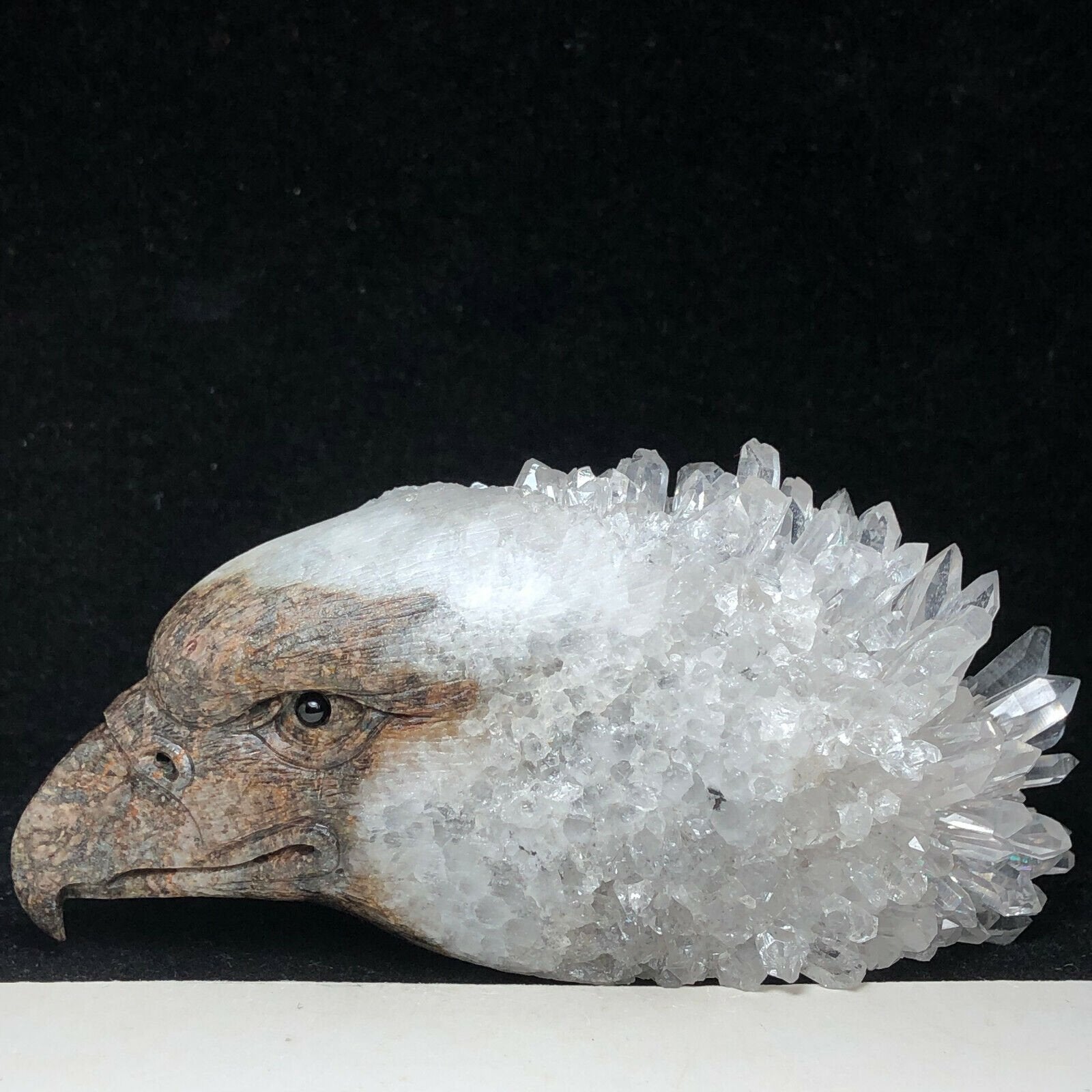 Natural Crystal Cluster Quartz Mineral Specimen Purely Hand-carved Bald Eagle.