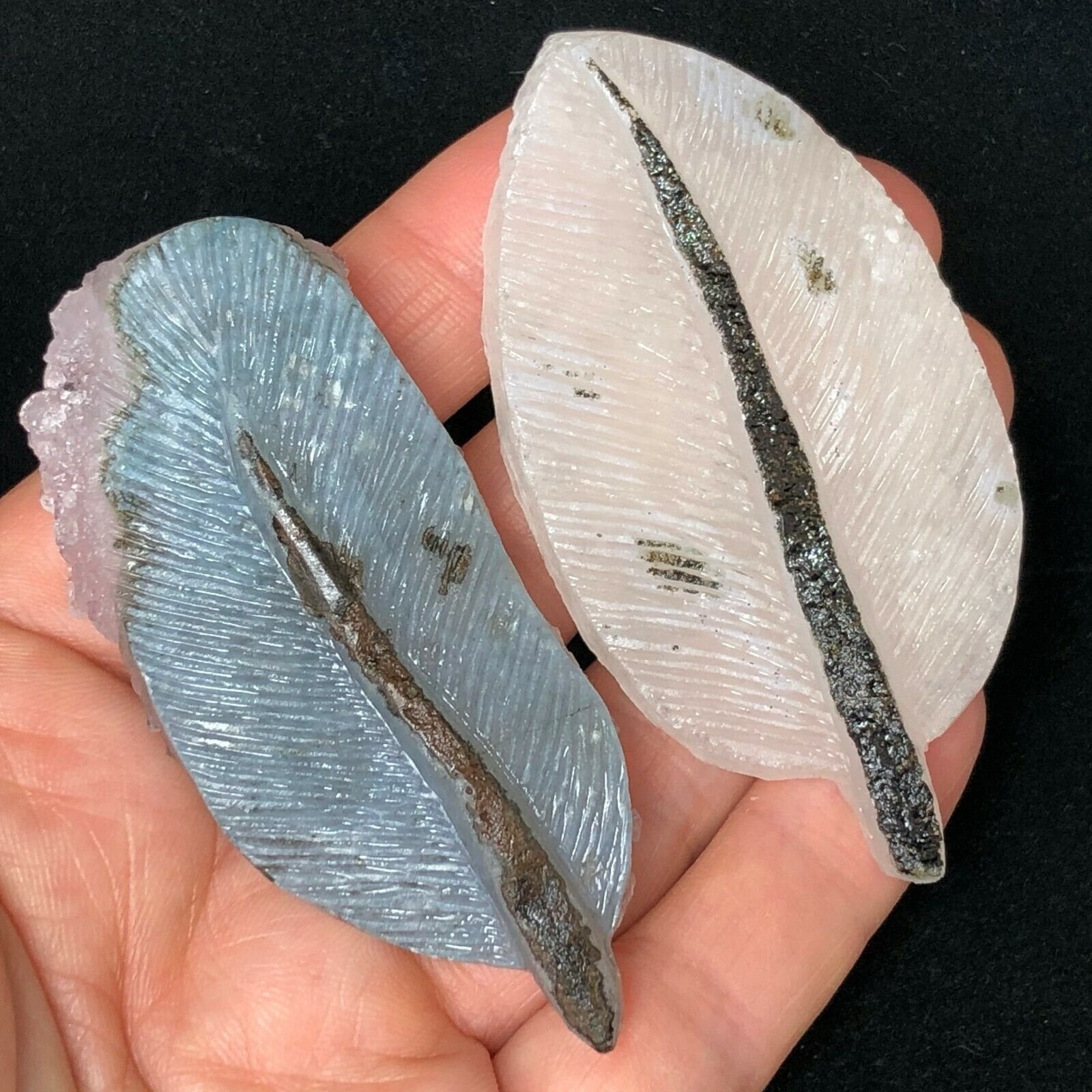 Natural Crystal Cluster Amethyst Mineral Specimen Hand Carved Feather Gift 99g BLUE