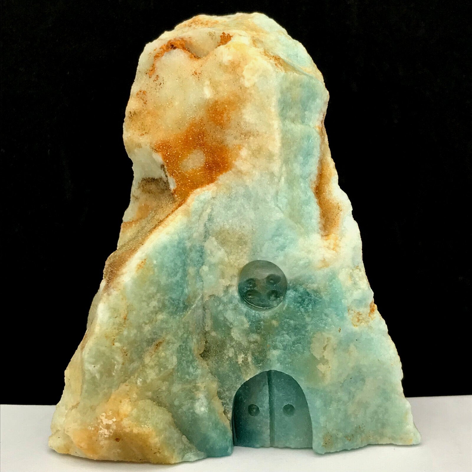 Unusual Amazonite House with Druzy Quartz Crystals, 76mm Tall, 237g (Blue, Green, Orange, Yellow)