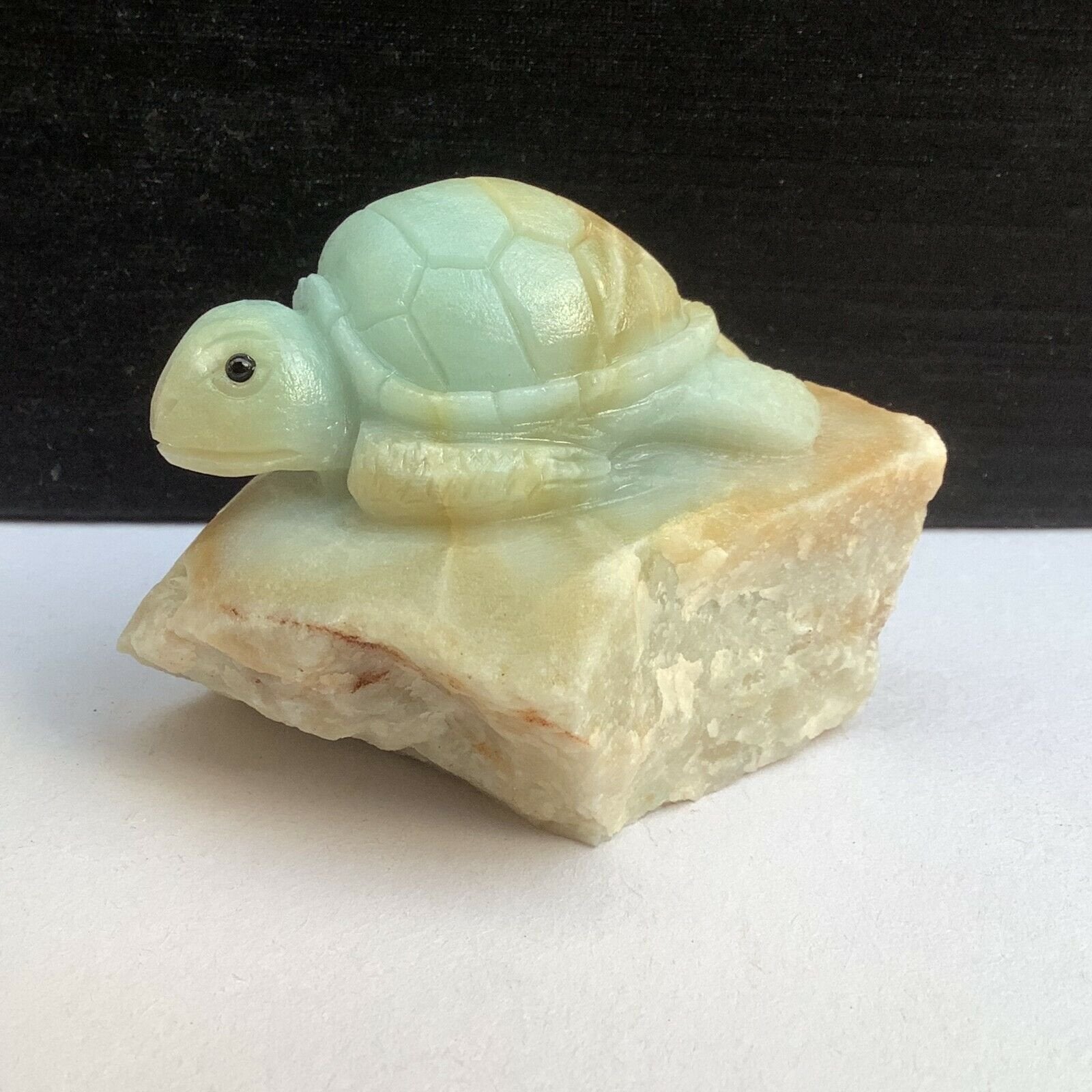 Natural quartz crystal cluster mineral specimen amazonite hand-carved Sea turtle