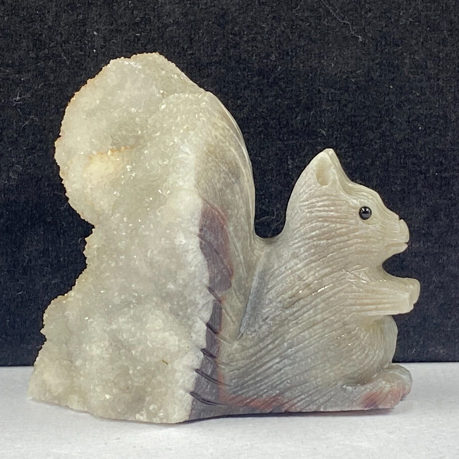 Unusual Sphalerite Squirrel with Druzy Quartz Crystals, 58mm Tall, 161g (White, Gray)