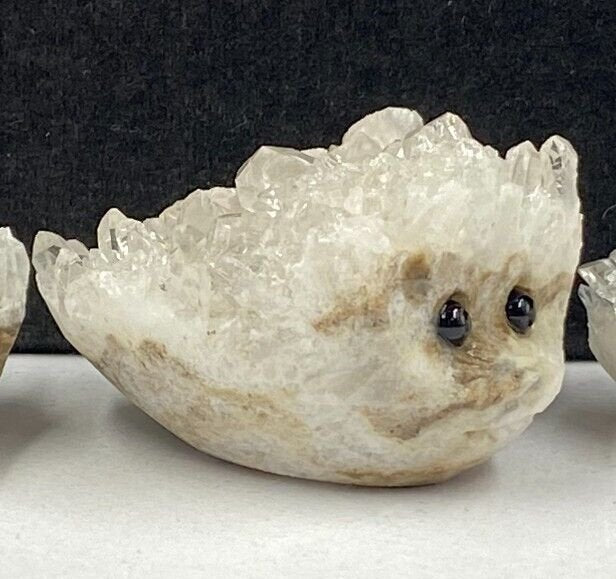 Unusual Stone Hedgehog with Quartz Crystals, 31mm Tall, 66g (Clear, White, Brown)