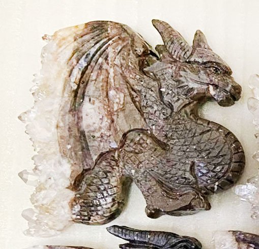 Unusual Stone Wyvern with Quartz Crystals, 525g (White, Brown, Clear)